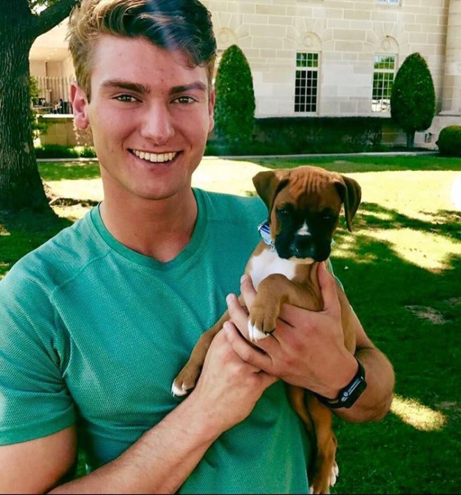 Grayson adopted Breck as he was graduating from OU. This constant companion has been his lifesaver at times. She’s absolutely perfect. He selected her from a breeder when she was only days old. He had no way of knowing that she would be a miniature – weighting less than forty pounds when typically boxers are in the 60 lbs. range. She has a sweet disposition and Grayson has trained her well. She is the perfect size for apartment living. She travels well, and she gets along beautifully with other dogs. Breck influences Grayson’s every decision – including where he lives, who he lives with, who he dates, where he goes after work, and how he plans his weekends.